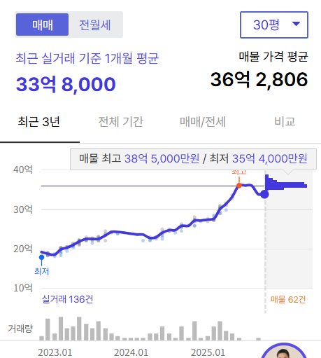 호가(呼價)의 급등: 시장의 분위기는 더욱 뜨겁습니다. 매물을 거둬들이거나 호가를 대폭 상향하는 집주인들이 늘면서, 호가는 이미 실거래가를 뛰어넘어 76㎡는 최고 33억 원, 84㎡는 최고 37억 원까지 형성되고 있습니다.